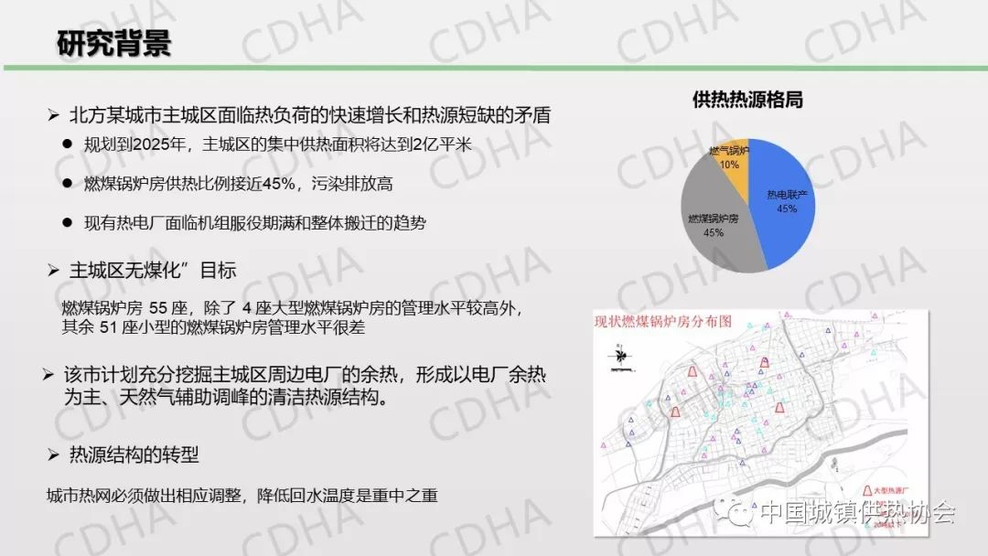 黃偉在“長(zhǎng)輸管網(wǎng)相關(guān)技術(shù)”分論壇上作了關(guān)于此篇論文的主題演講。他介紹了該項(xiàng)目的研究背景、管網(wǎng)改造方案、運(yùn)行調(diào)節(jié)策略以及系統(tǒng)評(píng)價(jià),總結(jié)提出集中與分散式相結(jié)合,通過(guò)兩者之間的流量調(diào)配和熱量調(diào)配使總回水溫度全采暖季維持在21℃左右,基于低回水溫度的供熱系統(tǒng),即使用70公里以外的電廠(chǎng)供熱,與本地燃?xì)忮仩t相比較依然具有顯著的節(jié)能效益和經(jīng)濟(jì)性。