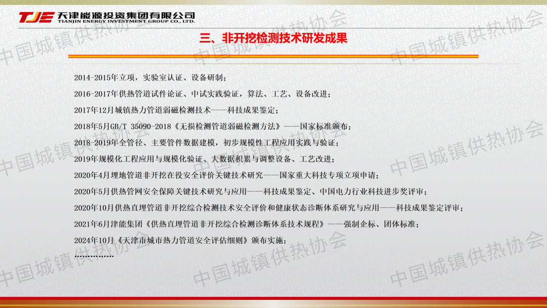 天津能源津能管業(yè)總經(jīng)理、天津恒泰感知精測科技有限公司執(zhí)行董事范彥釗以《城鎮(zhèn)供熱直埋管道非開挖無損檢測健康診斷安全評估體系》為題發(fā)表演講,分享了城鎮(zhèn)供熱直埋管道非開挖安全評估技術(shù)政策、管理體系,非開挖檢測技術(shù)研發(fā)成果、應用場景。