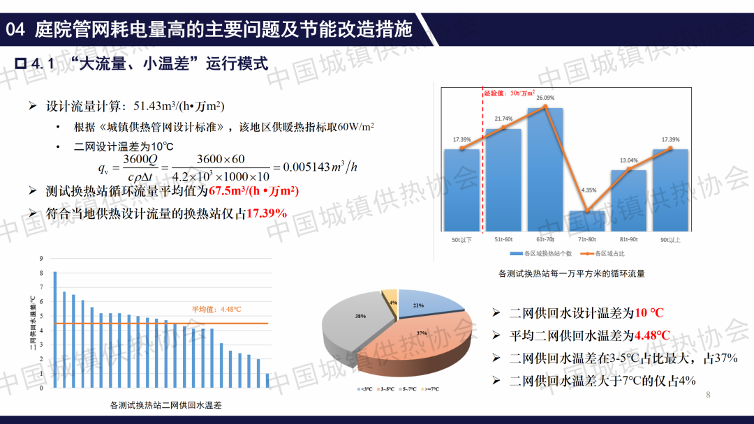 “二網(wǎng)平衡與調(diào)控”分論壇上,萬夢涵就此論文作了主題演講,介紹了庭院管網(wǎng)耗電量高的主要問題及節(jié)能改造措施、失水的監(jiān)測方法和節(jié)能措施,總結(jié)提出,維持優(yōu)良水質(zhì)是防止換熱器、除污器等關(guān)鍵阻力部件堵塞、保障系統(tǒng)長期穩(wěn)定運行的核心要素。持續(xù)的水壓監(jiān)測與有效的查漏工作,是供熱系統(tǒng)安全、可靠運行的基礎(chǔ)保障。隨著智慧供熱技術(shù)的發(fā)展,應(yīng)充分利用數(shù)據(jù)價值,尤其是室溫采集數(shù)據(jù),推動供熱運行管理向數(shù)據(jù)驅(qū)動模式轉(zhuǎn)型。