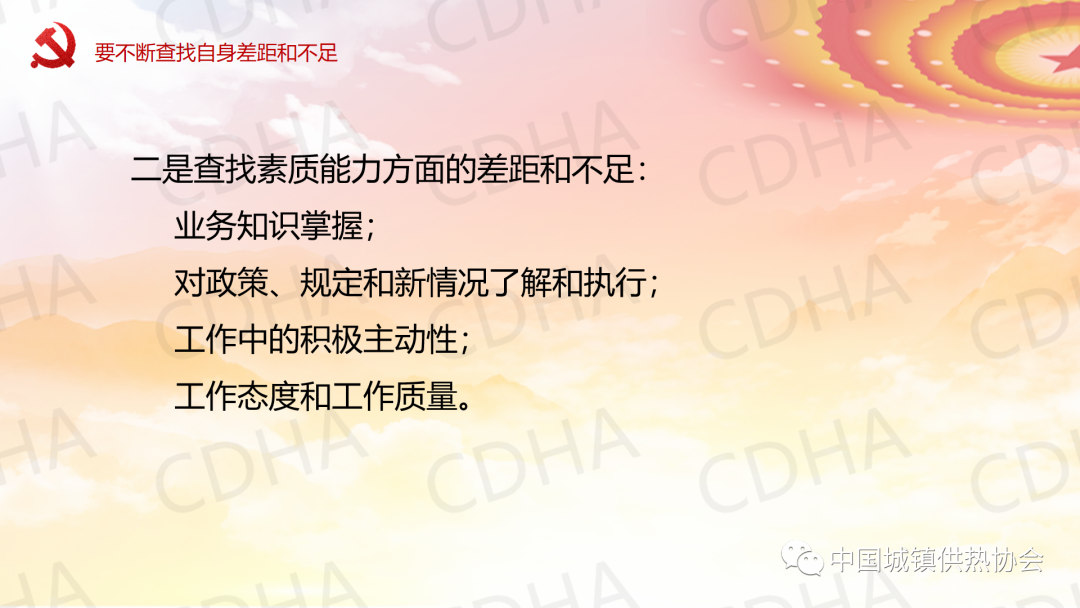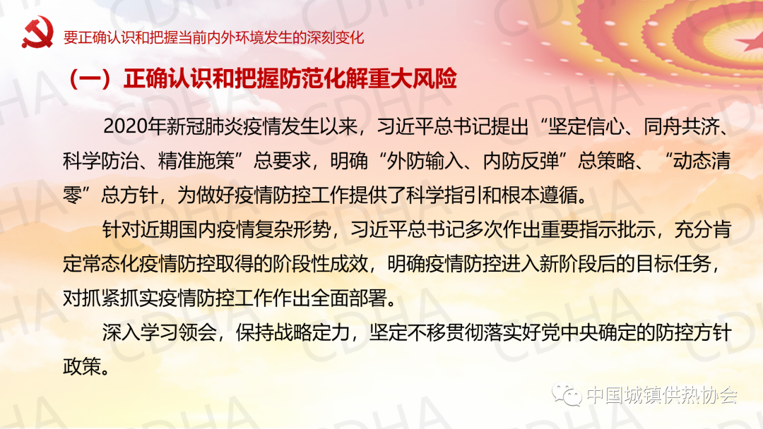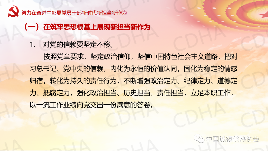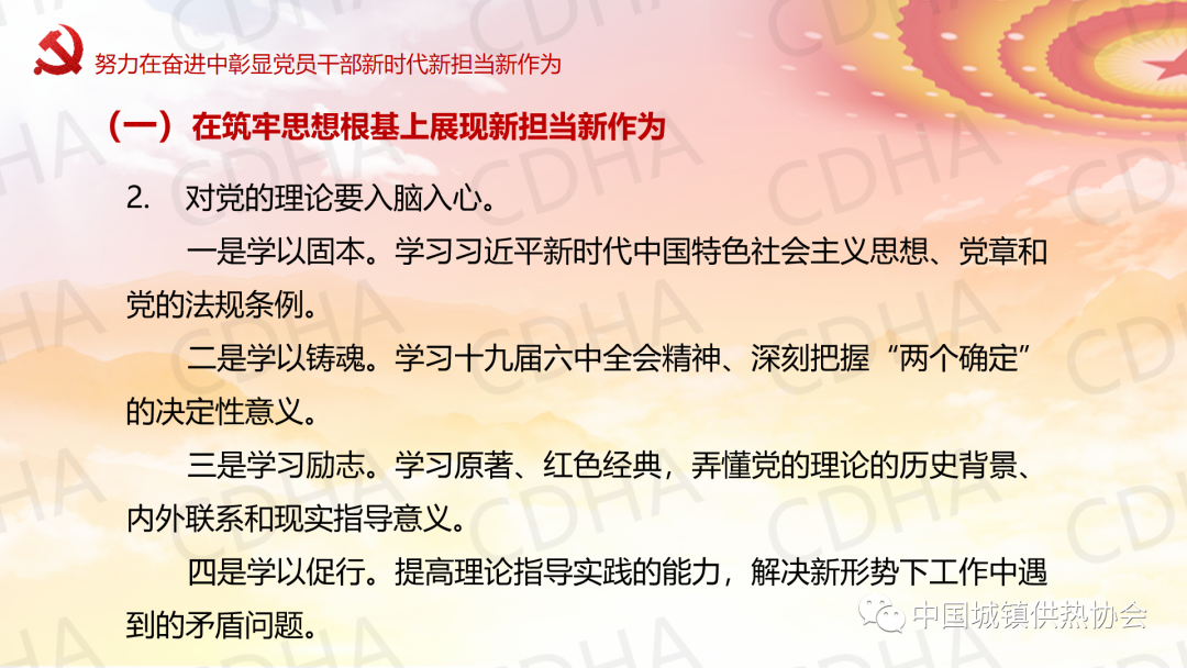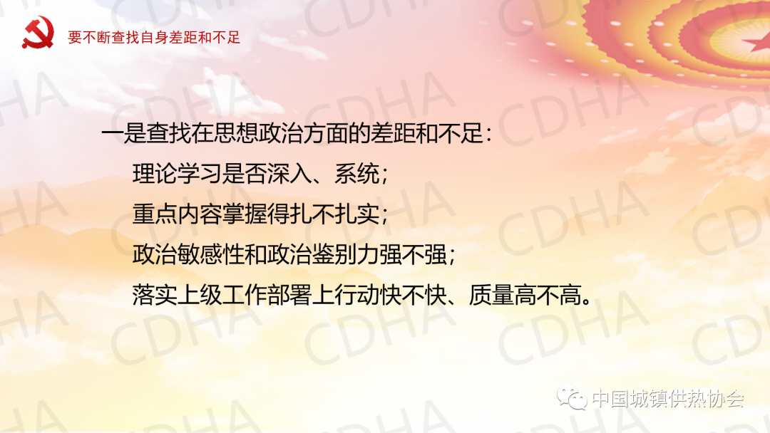 5月23日,中國城鎮(zhèn)供熱協(xié)會黨支部采用線上與線下相結(jié)合的方式召開黨員大會,邀請理事長劉水洋同志為協(xié)會黨支部講黨課,黨支部全體7名黨員均參加了黨課學習。劉水洋表示:一要正確認識和把握當前內(nèi)外環(huán)境發(fā)生的深刻變化;二要始終牢記初心使命;三要不斷查找自身差距和不足;四要努力在奮進中彰顯黨員干部新時代新?lián)斝伦鳛椤?/span>劉水洋總結(jié)提出:希望各位黨員和職工要更加積極主動做好自己承擔的日常工作,盡心盡力、盡職盡責,高質(zhì)量高標準,主動推動,出色完成;要成為本崗位本領(lǐng)域的行家和專家,做到政策熟記、業(yè)務(wù)精通,底數(shù)清、情況明;要敢于承擔急難險重任務(wù),敢于迎接挑戰(zhàn),為協(xié)會高質(zhì)量發(fā)展做出自己應(yīng)有的貢獻,實現(xiàn)自身的價值。