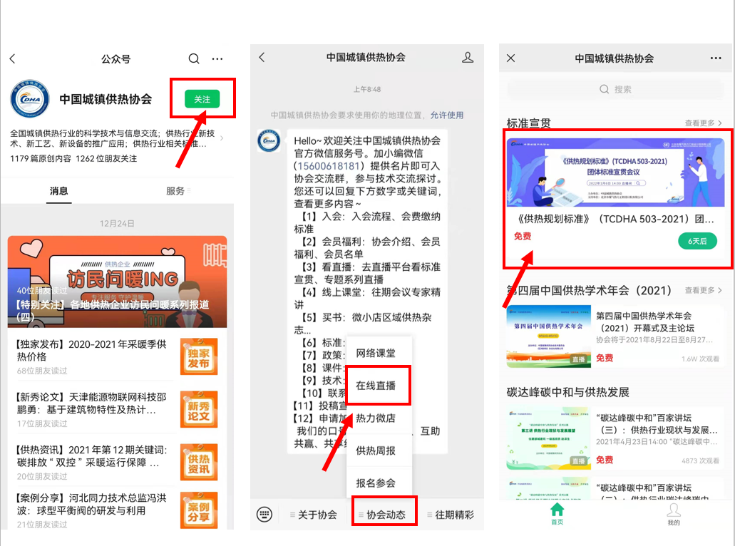 關(guān)注本公眾號“中國城鎮(zhèn)供熱協(xié)會”,在底部菜單欄“協(xié)會動態(tài)-在線直播”中點(diǎn)擊觀看。