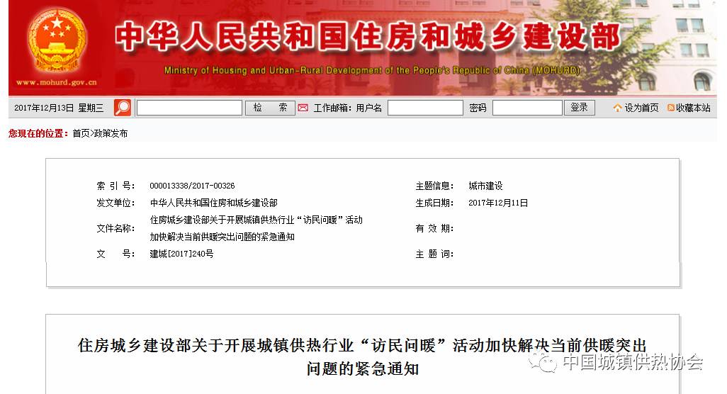 為深入貫徹落實(shí)黨的十九大精神、堅(jiān)持以人民為中心的發(fā)展思想、堅(jiān)持把人民群眾的小事當(dāng)作自己的大事、確保人民群眾溫暖過冬,12月11日,住房城鄉(xiāng)建設(shè)部下發(fā)緊急通知,要求各地城鎮(zhèn)供熱管理部門在2018年元旦之前,利用周末時(shí)間集中組織開展一次“訪民問暖”專項(xiàng)活動(dòng),加快解決當(dāng)前供暖突出問題。