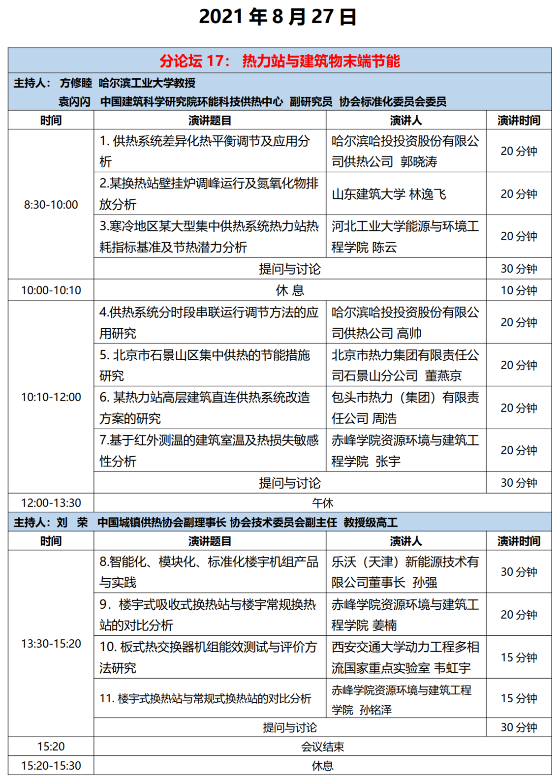 第四屆中國供熱學術(shù)年會日程(持續(xù)更新中)