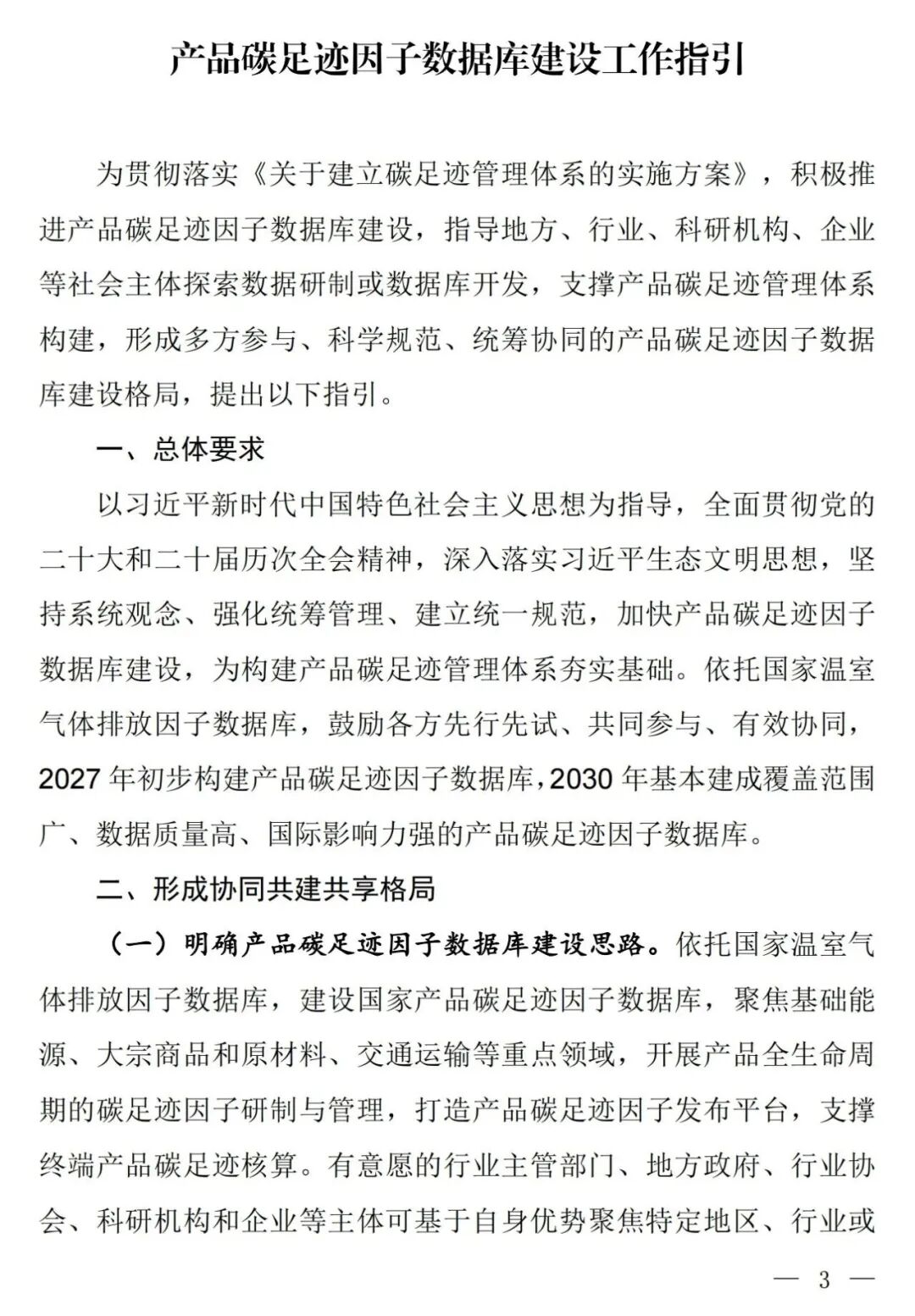 為深入貫徹黨的二十大和二十屆歷次全會精神,落實(shí)《關(guān)于建立碳足跡管理體系的實(shí)施方案》要求,積極推進(jìn)產(chǎn)品碳足跡因子數(shù)據(jù)庫建設(shè),指導(dǎo)地方、行業(yè)、科研機(jī)構(gòu)、企業(yè)等社會主體探索數(shù)據(jù)研制或數(shù)據(jù)庫開發(fā),生態(tài)環(huán)境部會同國家發(fā)展改革委、工業(yè)和信息化部、住房城鄉(xiāng)建設(shè)部、交通運(yùn)輸部、市場監(jiān)管總局、國家數(shù)據(jù)局制定了《產(chǎn)品碳足跡因子數(shù)據(jù)庫建設(shè)工作指引》,現(xiàn)印發(fā)給你們,請結(jié)合實(shí)際抓好落實(shí)。
