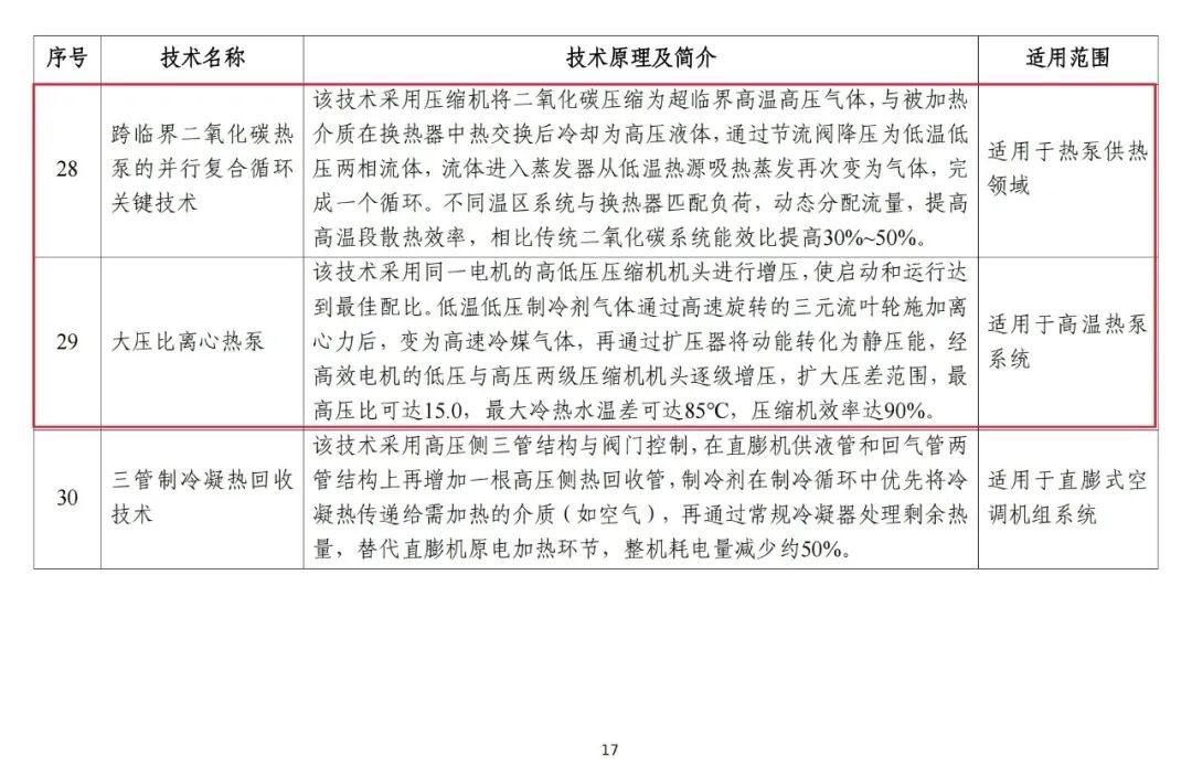 12月15日,工信部發(fā)布《國(guó)家工業(yè)和信息化領(lǐng)域節(jié)能降碳技術(shù)裝備推薦目錄(2025年版)》,聚焦工業(yè)節(jié)能降碳技術(shù)、信息化領(lǐng)域節(jié)能降碳技術(shù)及高效節(jié)能裝備三大板塊。《目錄》提到,二氧化碳復(fù)疊分體空氣源熱泵技術(shù)、跨臨界二氧化碳熱泵的并行復(fù)合循環(huán)關(guān)鍵技術(shù)、基于平衡熱量表的智慧供熱技術(shù)、基于磁懸浮熱泵的工業(yè)廢熱低碳供暖技術(shù)等適用于供熱行業(yè)。高效裝備收錄了熱泵、工業(yè)鍋爐等7類(lèi)103款產(chǎn)品,能效全部為1級(jí)以上。