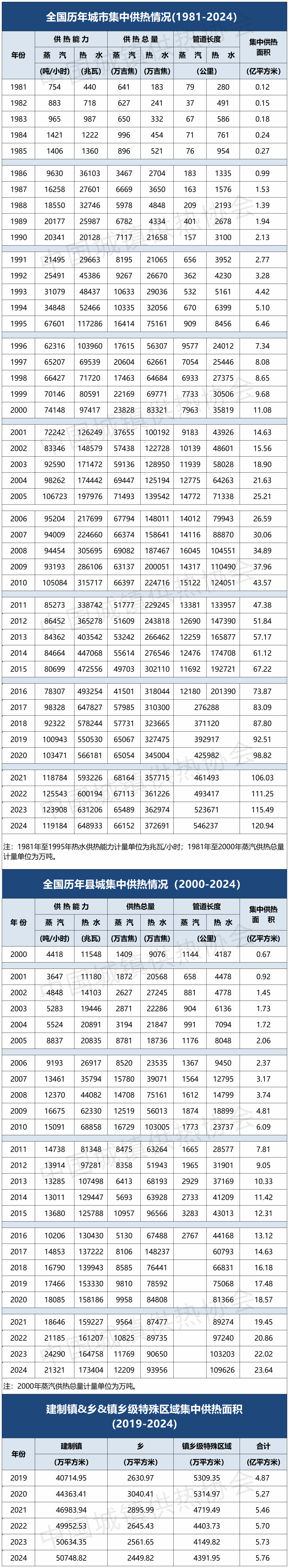 日前,國家住房和城鄉(xiāng)建設(shè)部發(fā)布《2024年城市建設(shè)統(tǒng)計(jì)年鑒》《2024年城鄉(xiāng)建設(shè)統(tǒng)計(jì)年鑒》,公布了1981年至2024年全國歷年城市集中供熱情況以及2000年至2024年全國歷年縣城集中供熱等情況。