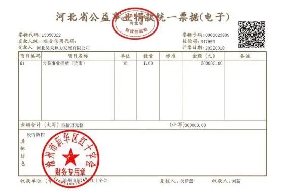 3月18日,河北昊天熱力發(fā)展有限公司向滄州市新華區(qū)紅十字會捐款30萬元,用于購置防控一線急需的各類物資。
