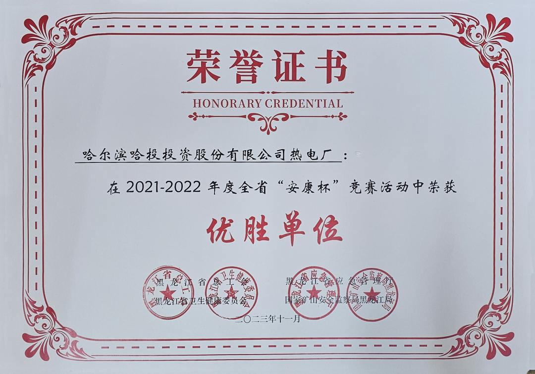 1.哈投集團(tuán):哈投熱電廠榮獲2021-2022年度全省“安康杯”優(yōu)勝企業(yè)