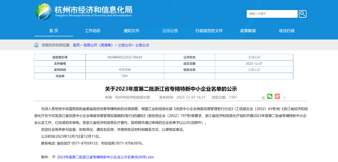 浙江省經(jīng)濟(jì)和信息化廳組織公布2023年度第二批省專精特新中小企業(yè)名單。云谷科技成功入選。