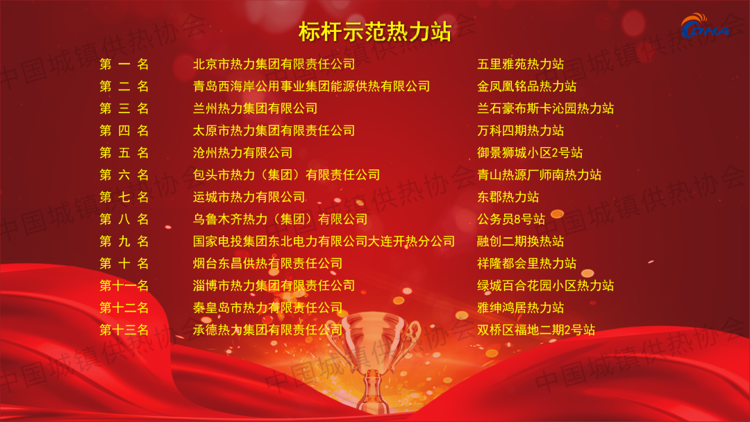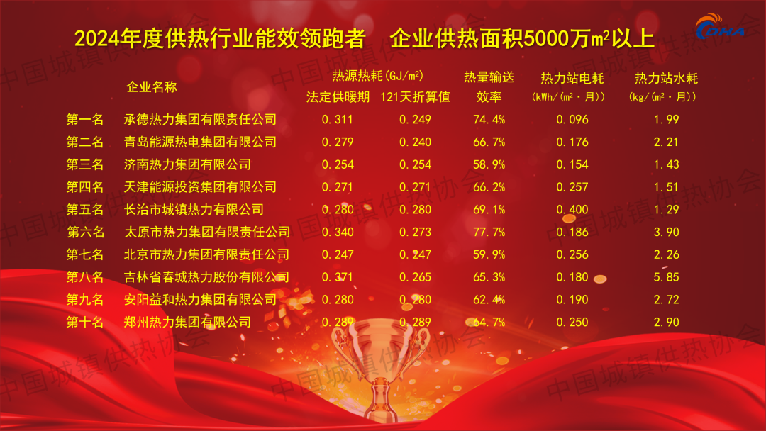 2024年8月21日,第七屆中國供熱學術年會主論壇上,根據(jù)中國城鎮(zhèn)供熱協(xié)會2022-2023供暖期統(tǒng)計數(shù)據(jù),協(xié)會發(fā)布了2024年度中國供熱行業(yè)能效領跑者榜單!共有30家供熱企業(yè)入榜!同時公布25個標桿示范熱力站、11家能效進步之星以及人均供熱面積、燃煤鍋爐效率、燃氣鍋爐效率、工業(yè)余熱供熱能力、熱網(wǎng)熱量輸送效率、熱源單位面積耗熱量、熱力站單位面積耗電量、熱力站單位面積補水量8大指標先進企業(yè)名單,并為獲獎單位頒發(fā)證書。(排行榜單附文后)