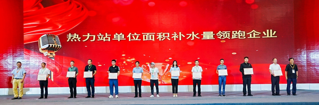 天津大學特聘研究員、協(xié)會城市能源規(guī)劃專委會委員王雅然,北京建筑大學教授李德英為“熱力站單位面積補水量”指標領跑企業(yè)頒獎。