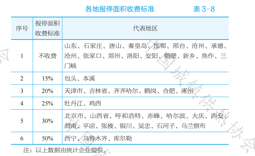 各地報停面積收費標準詳見表3-8,可見山東、河南、河北多數(shù)地區(qū)停熱不收費,大多數(shù)地區(qū)收取15%~30%的熱費。