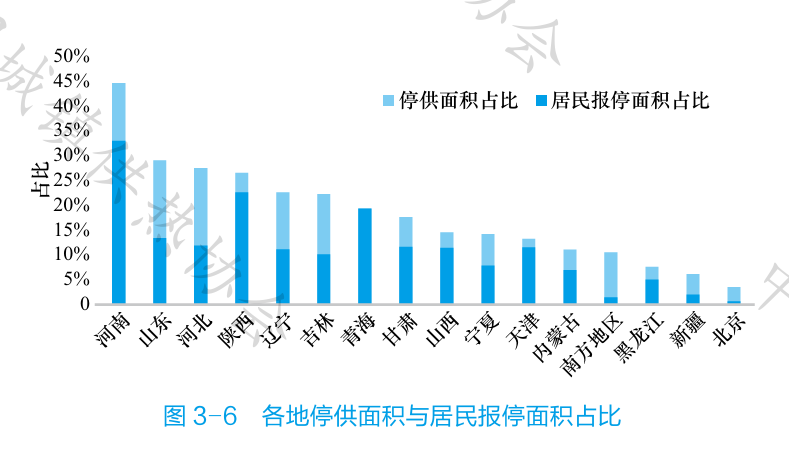 停供率升高除與各地住房空置率升高有直接關(guān)系外,與當?shù)貙用駡笸:蟛皇召M的政策也存在一定的關(guān)系。協(xié)會對報停收費標準進行統(tǒng)計后發(fā)現(xiàn),停供率較高的多處于寒冷地區(qū),如山東、河南、河北,同時當?shù)厥┬袌笸2皇召M的政策,這一政策有可能加劇了這些地區(qū)的報停“蹭熱”現(xiàn)象。由于供熱存在戶間傳熱,所以即使某一戶居民完全停熱了,相鄰住戶的熱仍然可以傳導至停熱的房間,而且實際上停熱戶消耗的熱量占比非常大,這些熱量均由周圍用戶來分擔;同時停熱戶完全關(guān)閥可能導致周圍沒有申請停熱的用戶室內(nèi)供暖溫度無法達標;而供熱企業(yè)為了讓停熱戶周邊戶的室溫達標,只能把停熱戶的閥打開,這樣供熱企業(yè)勢必要擔負停熱戶實際不停熱的成本。這方面研究有很多論文、專著,在此不做贅述。在我國北方采暖地區(qū),供熱作為民生保障工程受到各地政府的高度重視,因此在確保居民溫暖過冬的前提下,采取停熱完全不收費的政策有失公允,有違集中供熱的公用屬性,對公共利益、供熱企業(yè)利益、相鄰用戶利益均可能造成一定的侵害,并有可能引發(fā)一系列的社會矛盾。
