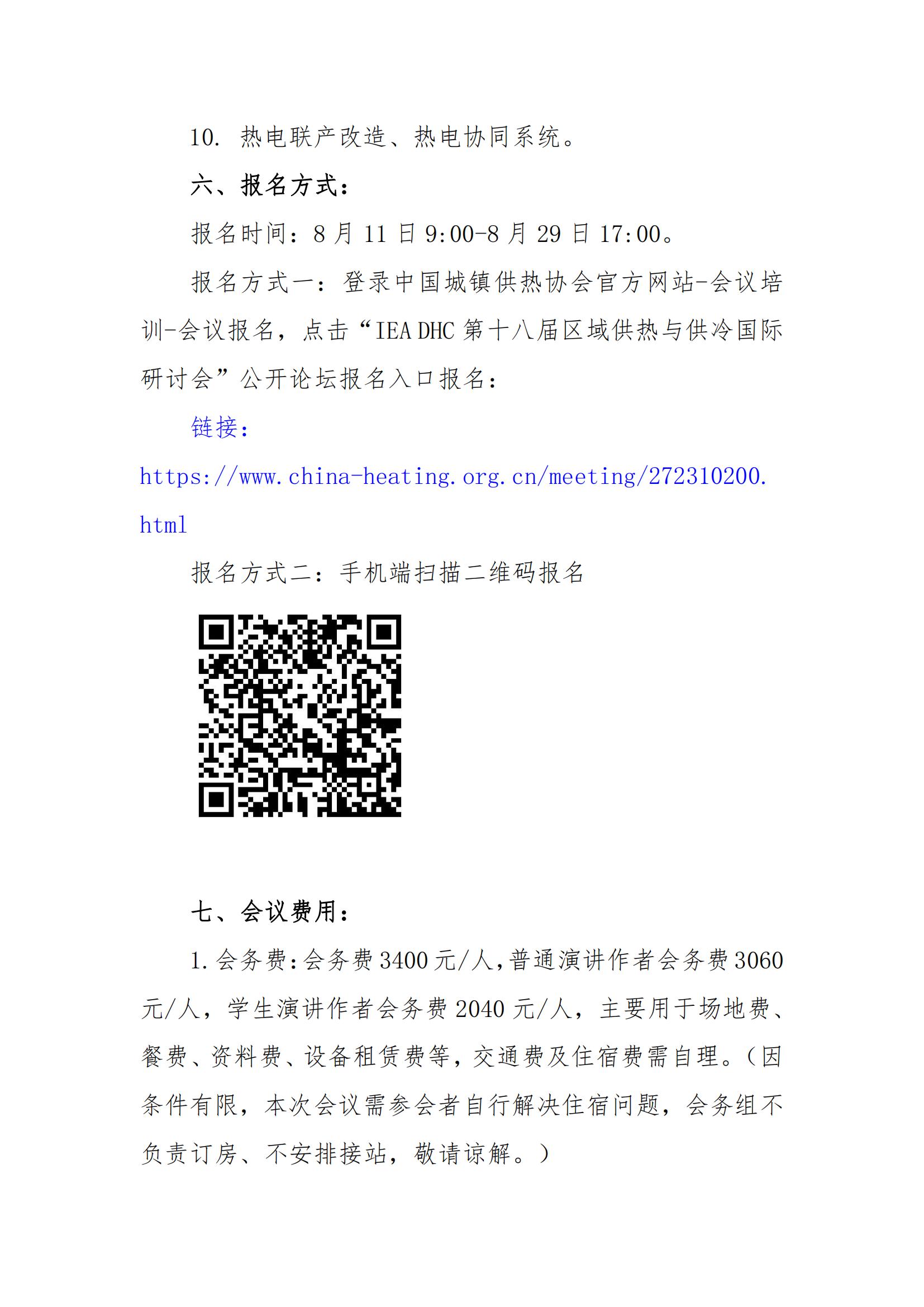 | IEA DHC第十八屆區(qū)域供熱與供冷國(guó)際研討會(huì) | ¥3,400.00 | ¥3,400.00 | 2023-08-09 09:00至08-31 17:00 | 300人 |