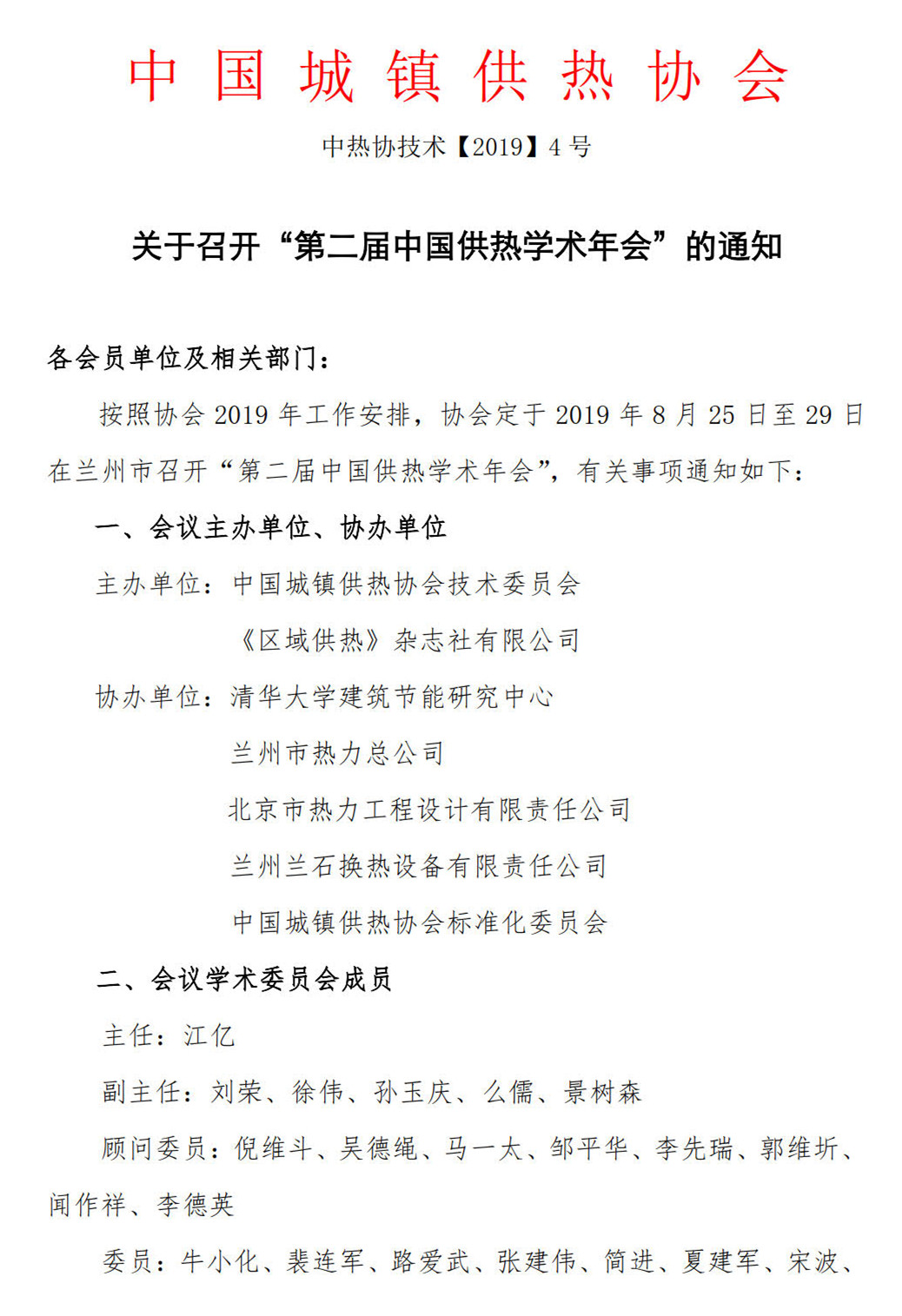 中國城鎮(zhèn)供熱協(xié)會技術(shù)委員會和《區(qū)域供熱》雜志社有限公司共同主辦的第二屆中國供熱學(xué)術(shù)年會將于2019年8月25日至29日在蘭州市召開。