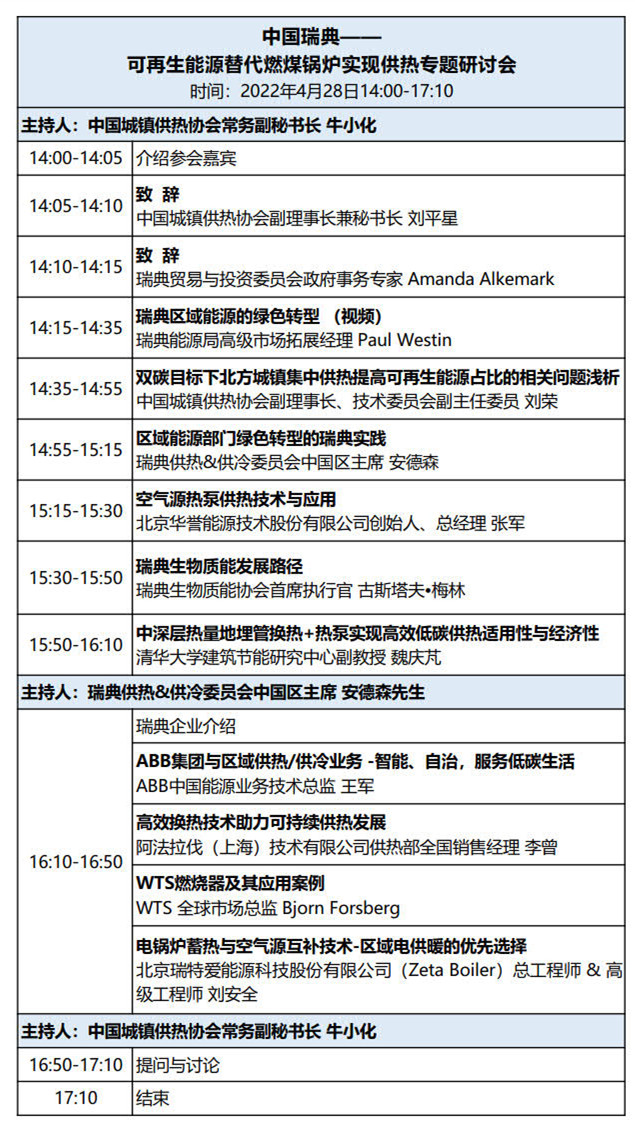 中國(guó)瑞典—— 可再生能源替代燃煤鍋爐實(shí)現(xiàn)供熱專(zhuān)題研討會(huì)