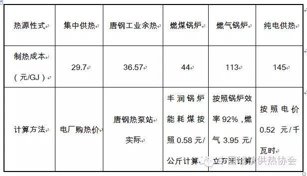 與其他形式熱源制熱成本對比表