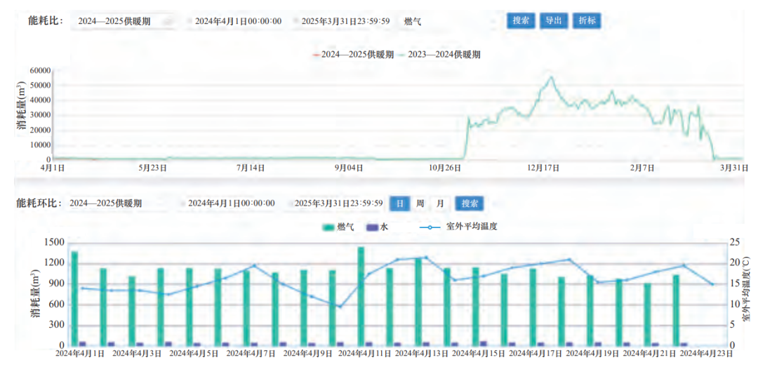 能源管理是供熱企業(yè)日常管理中的重中之重,而準確的計劃制定與及時的分析糾偏,是控制能源消耗的有效方法。目前縱橫三北熱力依托供熱管理平臺實施“日計劃、日統(tǒng)計、日分析、日修訂”的管理模式,應(yīng)用平臺大數(shù)據(jù)計算能力,開發(fā)了基于歷史能耗、室內(nèi)溫度、用熱特性的能耗預(yù)測系統(tǒng),下發(fā)預(yù)測能耗指導(dǎo)運行調(diào)控,結(jié)合在線能耗分析系統(tǒng),快速分析能源差異與差異原因,及時做出控制調(diào)節(jié)(圖4)。
