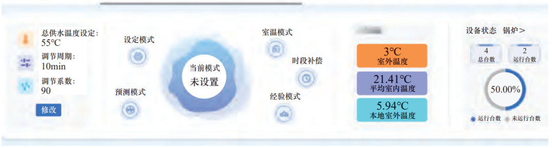 縱橫三北熱力對在管熱力站類項目也進行了信息化升級改造。在結(jié)合遠程監(jiān)控技術(shù),打造無人值守換熱站的同時,采集水泵、換熱器、閥門等設(shè)備的數(shù)據(jù),依照項目實際用熱需求,實現(xiàn)站內(nèi)“質(zhì)”“量”遠程調(diào)節(jié)管理。在“質(zhì)”“量”雙控調(diào)節(jié)的基礎(chǔ)上,依據(jù)氣溫變化下的不同用戶服務(wù)需求,精準化輸送所需熱量。供熱駕駛艙如圖2所示。